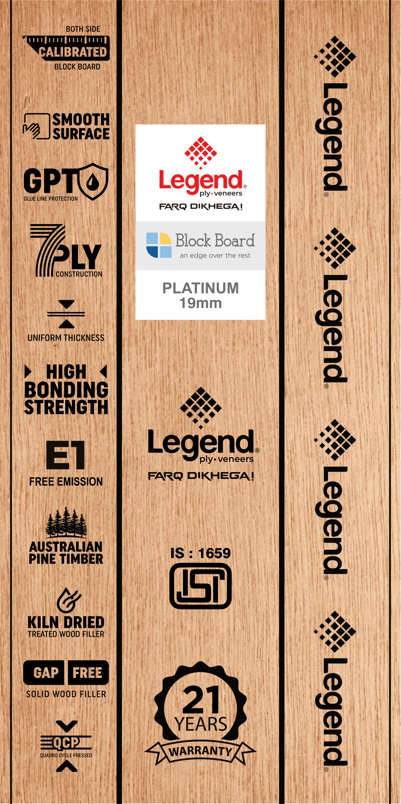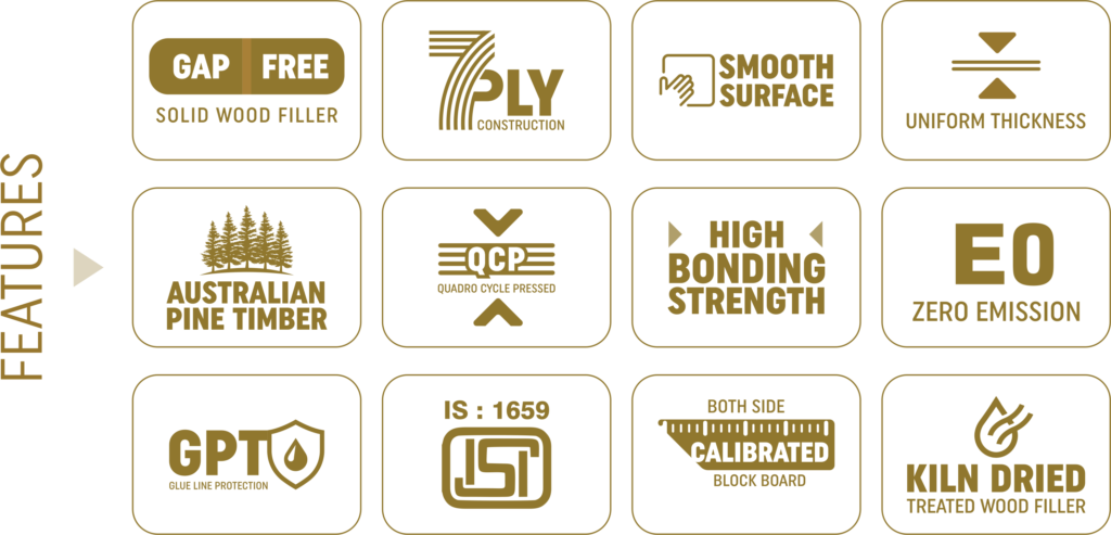 Experience the next level of durability with LegendPly Platinum Series Block Boards, crafted for superior performance. Their 7-ply construction, combined with Quadro Cycle pressing, delivers unmatched strength and a smooth, flawless surface. Glue line protection enhances overall durability, while the advanced E1 Free Emission technology makes them a healthier, eco-friendly choice. With kiln-dried, treated wood fillers and ISI:1659 certification, these block boards set the benchmark for reliability and longevity.